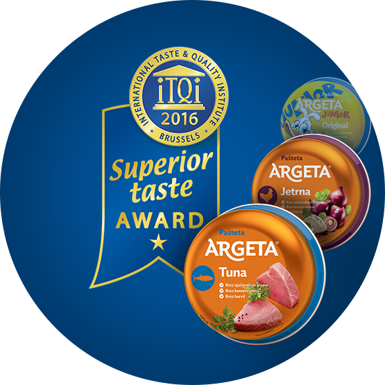 ITQI представя Argeta с наградата Superior Taste Award за пастет от черен дроб, Argeta Junior Original и Argeta Tuna Pâté. Argeta е на 5-то място по скалата на Valicon за най-силните марки в Словения.