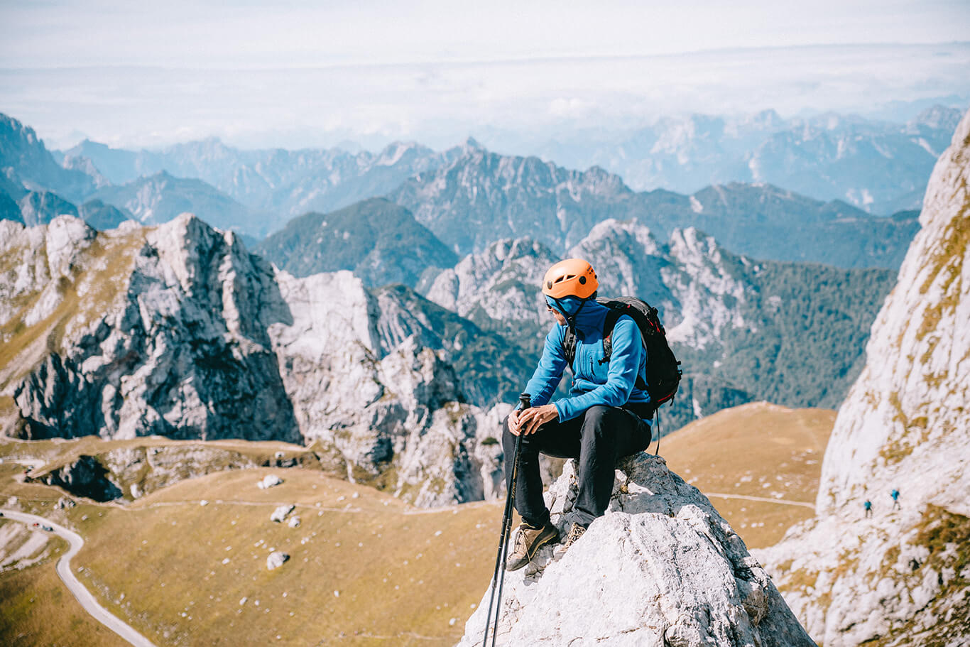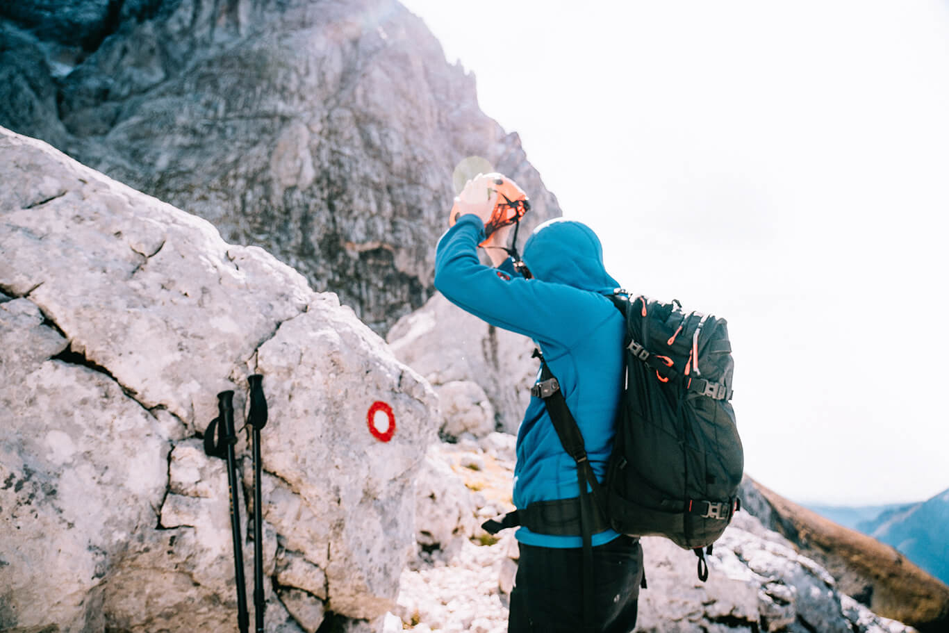 Trekking poles are also a life saver. They can take some of the load of your feet, and they also act as an additional point of contact with the ground. Something you’ll find extra useful during the descent. When doing via ferrata, be sure to bring a via ferrata kit and a pair of gloves with you if blisters aren’t your thing.