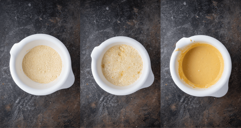 2. Place all the dry ingredients into a bowl – chickpea flour, sugar, salt and baking soda.