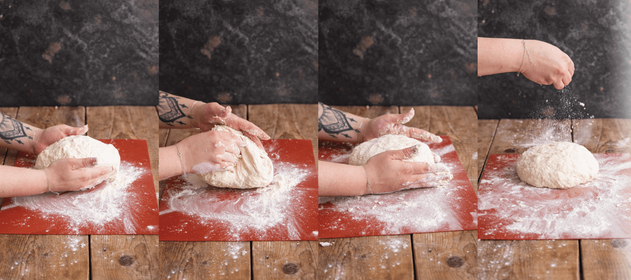 7. Flour your hands and shape the dough into a rather sticky loaf.