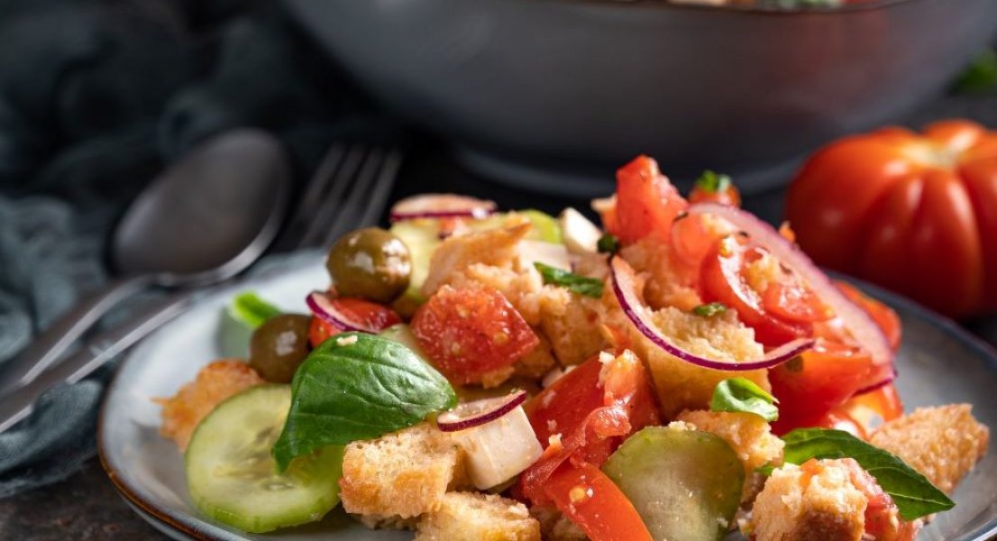 Some smart Italian must have had enough of such lunchtime battles, and so an ingenious tomato salad where stale bread is a key ingredient was born. In addition to bread and tomatoes, a panzanella can also have cucumbers, basil and cubes of fresh cheese. It’s a satisfying salad that works great as a stand-alone dinner dish or a light lunch.