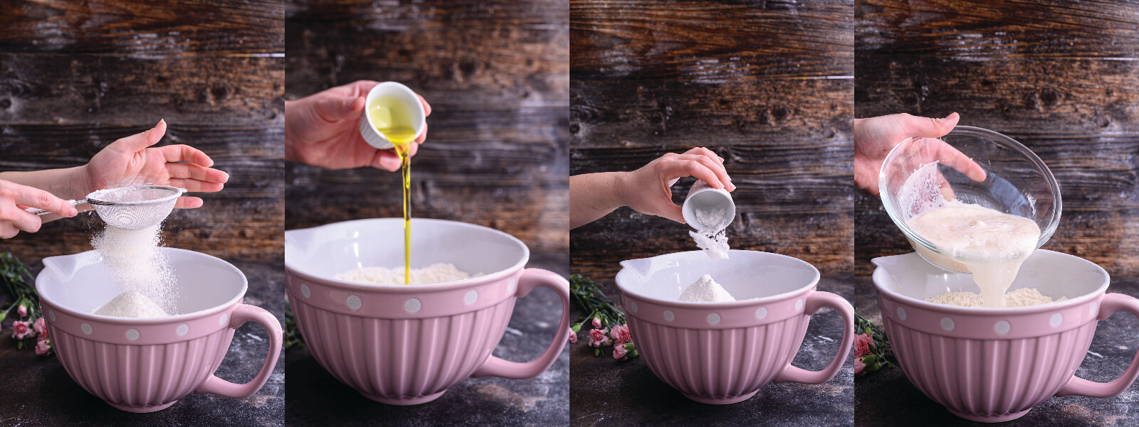 - Añade la sal, el aceite de oliva y la mezcla de levadura y agua.