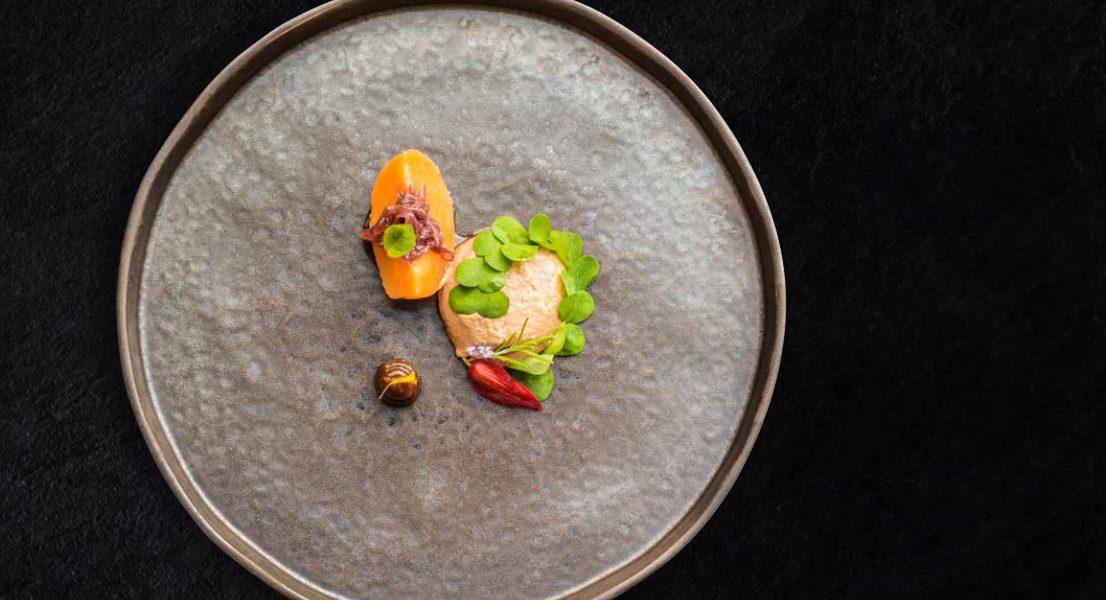 Kuhanu breskvu s marmeladom od luka servirajte na tanjuru, dodajte trunku smjese od suhih marelica i Argeta Exclusive paštetu a la JB. Ukrasite sezonskim zelenilom.