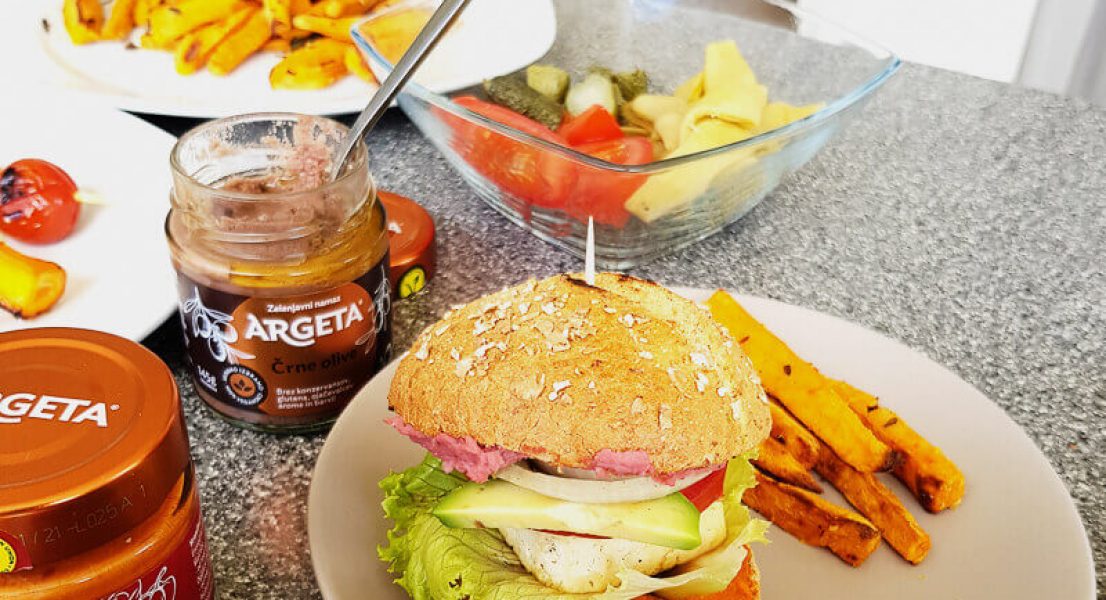 Vendosni simitet në skarë për një apo dy minuta për t’i bërë ekstra krokante. Pastaj shpërndani kremin e Argeta me spec të kuq apo me spec pikant në njërën gjysmë të secilit dhe kremin e Argeta me krem Panxhari dhe Rrike në gjysmën tjetër. Ky është një kombinim i përkryer i burgerit. Kur shefi i skarës ju thotë që tofu e pjekur në skarë tanimë është e gatshme, thjesht vendoseni atë në mes të simiteve me perime të freskëta, qepë dhe avokado. Shijoni, por keni parasysh…Mund të tundoheni edhe për një burger të dytë!