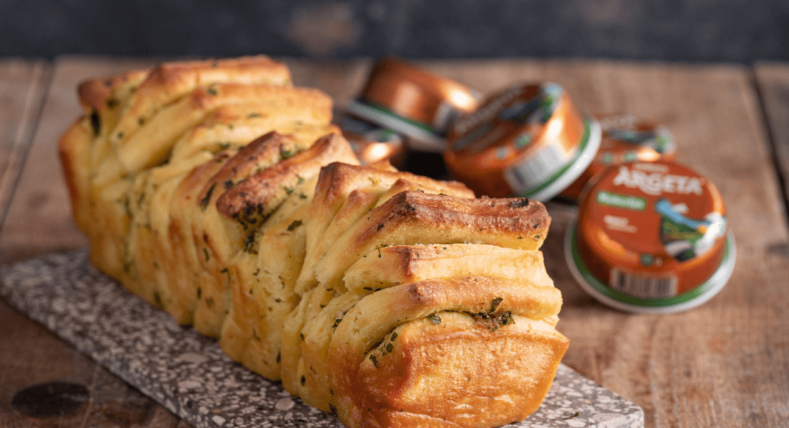9. Zodra het knoflookbrood is afgekoeld, scheur je er een stuk af en smeer je er een stevige hoeveelheid Argeta-paté op. Als je niet zeker weet van welke paté je wil genieten, kies hier dan je favoriete smaak.