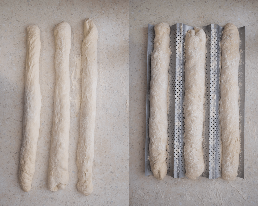 4. Leg alle drie de rollen in een speciale bakplaat voor stokbroden.