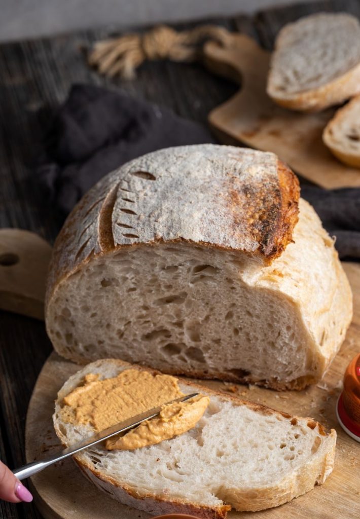 Het maken van dit brood duurt dan wel enkele dagen omdat u eerst een zuurdesemstarter moet bereiden, maar het hele proces is zeer interessant en leerzaam. Ga er dus meteen mee aan de slag en voeg zuurdesem toe aan uw bakvaardigheden. Zuurdesem is levende gist waarmee onze grootmoeders vroeger ook bakten - een mengsel van meel en water dat brood helpt rijzen dankzij de micro-organismen, melkzuurbacteriën en wilde gisten die het bevat. Zuurdesembrood staat bekend om zijn lichte en luchtige binnenzijde en knapperige korst. Bovenal is dit deeg gemakkelijker te verteren omdat het niet zwaar op de maag ligt. Dat maakt zuurdesembrood ideaal voor lichte snacks en lunches, met uw favoriete Argeta in de hoofdrol.