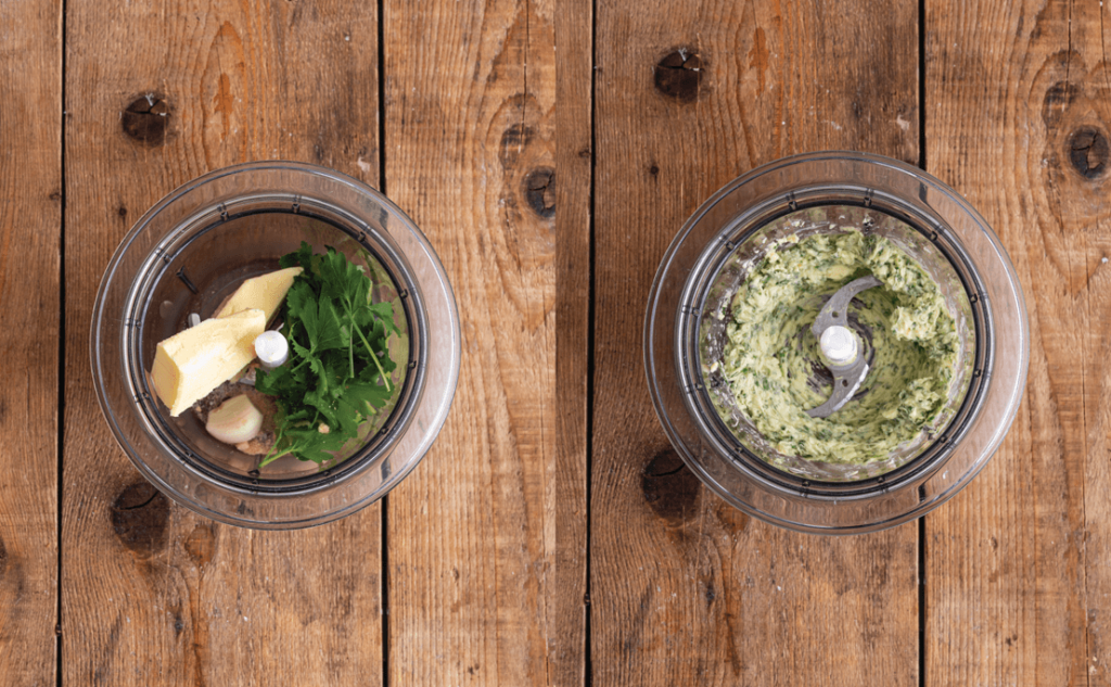 3. Mešajte dok se peršun i beli luk ne povežu sa maslacem.