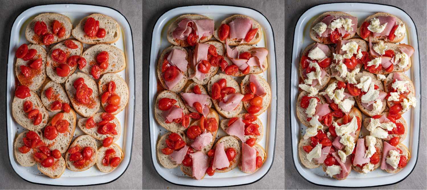 3. Razmažite zgnječene paradajze po podlozi od kriški hleba.