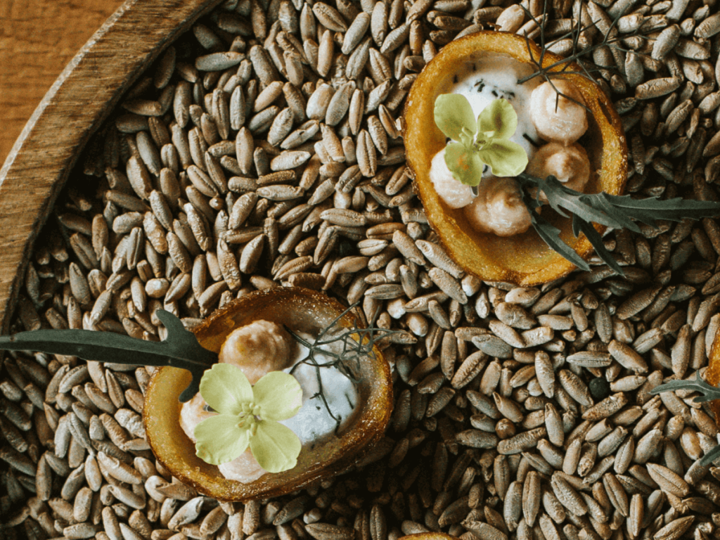 Värm ugnen till 200 grader Celsius, skala potatisen, marinera den med olja, salt och baka tills den är mjuk, ungefär en timme. När den är bakad, skär den i halvor medan den fortfarande är varm och gröp ur kärnan med en sked, men lämna ungefär tre millimeter potatiskött på skinnet. (Spara potatiskärnan för potatissallad.) Placera halvorna på en bakplåt och täck dem väl med smält smör, och salta för avsmakning och krydda med färskmalen peppar. Ställ sedan tillbaka potatisskalen i ugnen och baka tills de är krispiga (ca 10 minuter). Blanda under tiden hackad dill, gräddfil, fröolja och citronsaft och salt för avsmakning i en skål.
