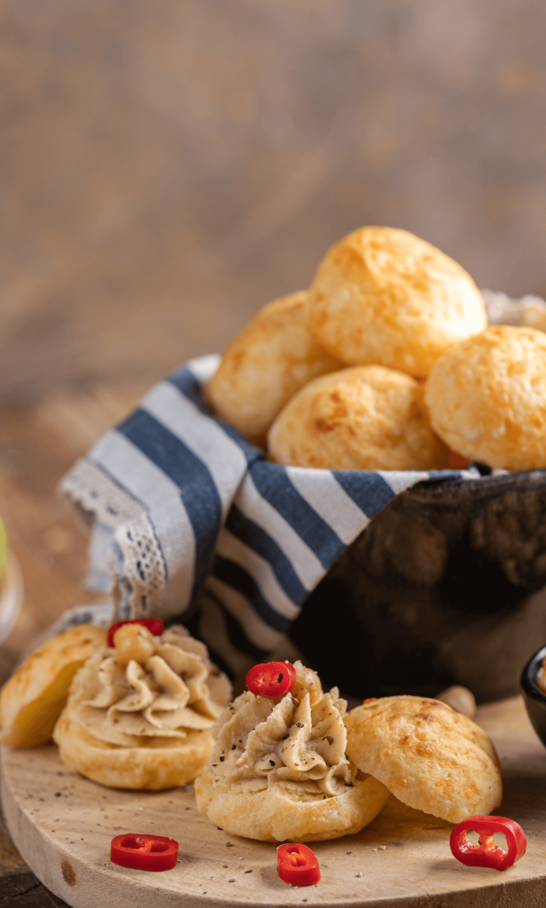 Dessa småfrallor med tapioka och ost tar dig med till Brasilien. Tapioka är en slags stärkelse som kommer från kassavaroten och ofta används som redning i matlagning. Utöver tapioka innehåller småfrallorna rejält med ost, vilket gör att de passar perfekt med Argeta, det mest populära bredbara kött- och fiskpålägget i Europa.