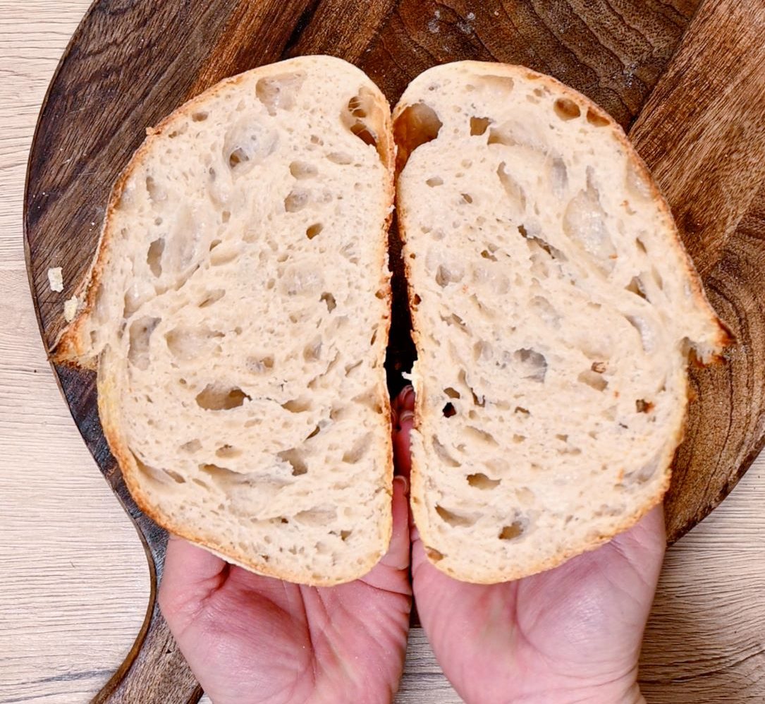 7. Kruh naj se peče pri 250 ºC – najprej 20 minut v pokriti posodi, nato še 10 minut v odkriti.