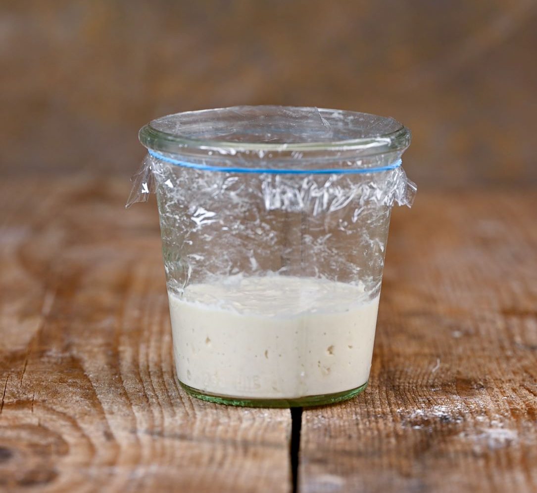 1. K drožnemu nastavku primešamo 20 g vode in 20 g moke.