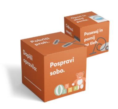 Ko je kocka sestavljena, jo morate samo še vreči. Tvoj otrok je odgovoren za tisto opravilo, na katerem pristane kocka. Če imaš več otrok, vrzi kocko tolikokrat, da ima vsak otrok svoje opravilo.