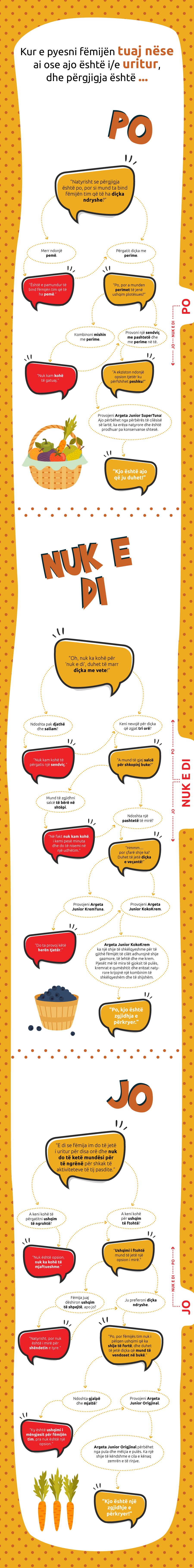 Është kombinim i njëjtë i pyetjeve të vjetra, apo jo? “A ke uri? Çka dëshironi të hani?” Me produktet Argeta Junior, të prodhuara pa konservanse shtesë, nuk duhet të brengoseni për ushqimin e ardhshme të lehtë të fëmijës suaj. Ne dëshirojmë t’ua prezantojmë vendimet më të mira të mundshme.